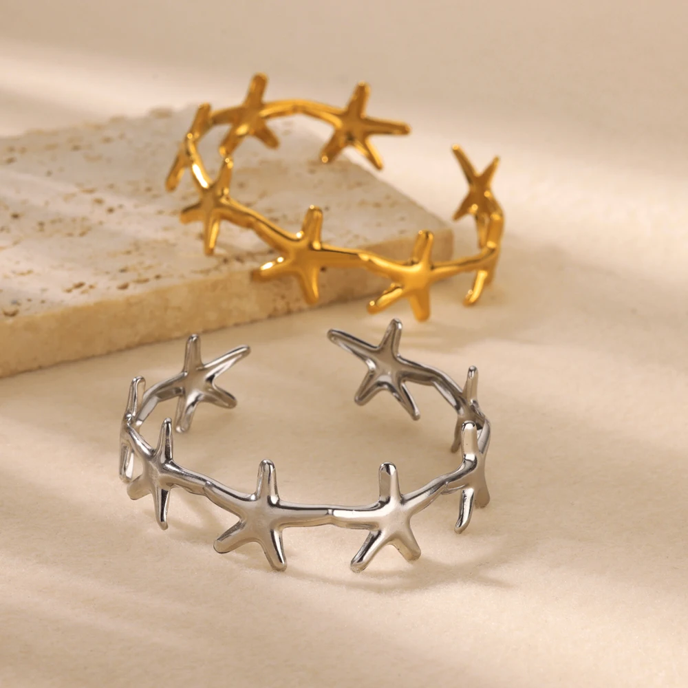 Designed for modern women who love effortless style, this trendy cuff is lightweight, comfortable, and perfect for everyday wear or summer occasions. Whether worn alone as a statement piece or layered with other favorites, the Ocean Star Bangle brings a touch of ocean-inspired magic and timeless sophistication to your jewelry collection. ✨